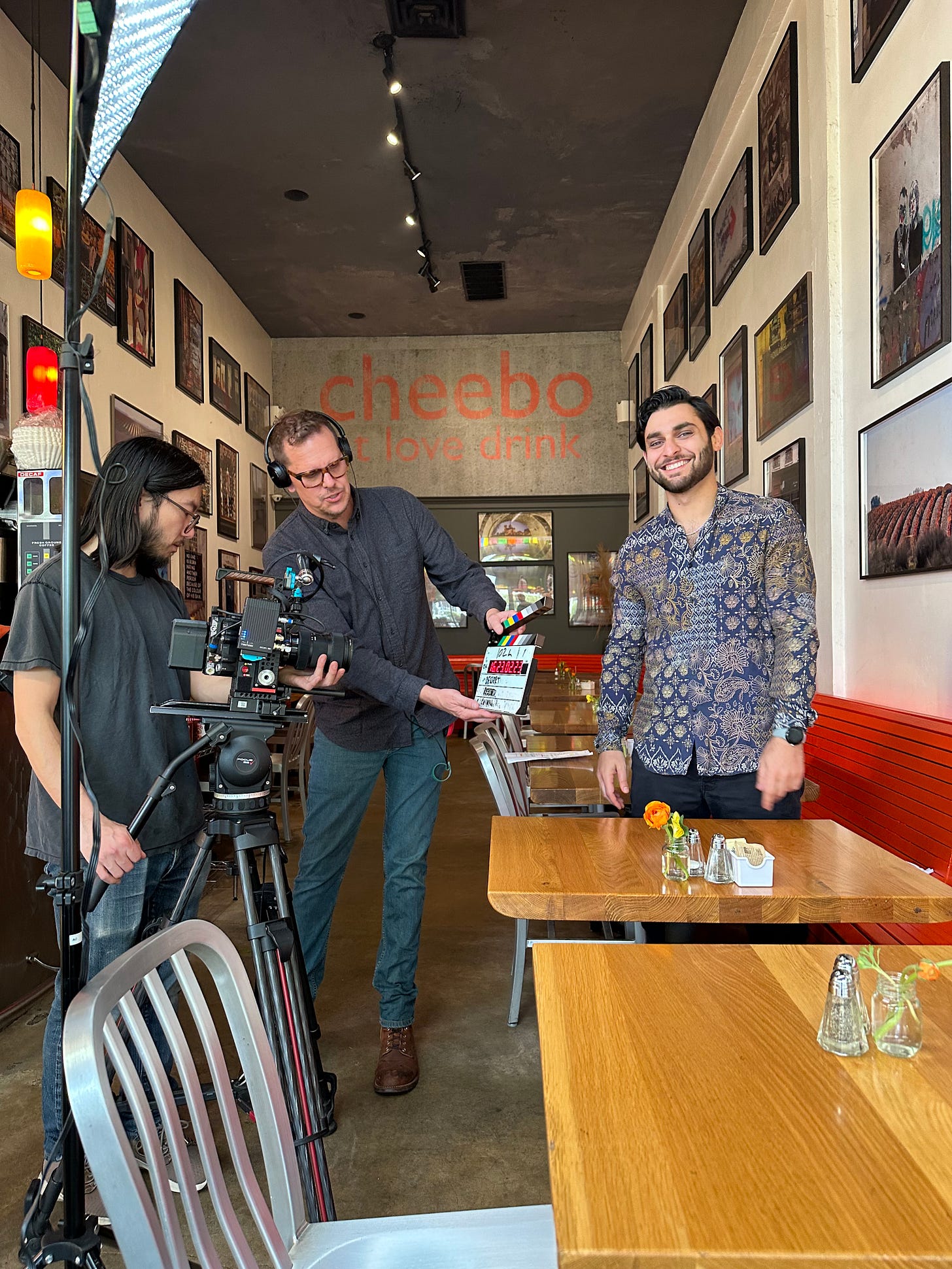 I went to a dozen cafes and restaurants, pitching my film and the goal of the challenge. My heart began to break, thinking we’d not find our key location. The day before our shoot, I pulled into Cheebo, an icon of Sunset Blvd. George, the GM, liked the concept and took a chance, noting it was his first week on the job. So, my screwing up was not an option. I’m proud to say not only did we finish on time, but the shots we got were amazing and created a dynamic date montage for the film.